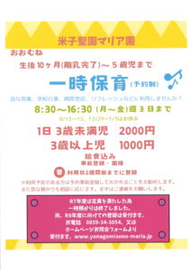 登録時・・・一時預かり保育をされる前に登録が必要です。(初回のみ)
